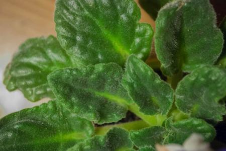 Au début, un revêtement blanc peut ressembler à une épaisse couche de poussière. Les feuilles de violette sont texturées en elles-mêmes, donc au début, elles ne sont pas très visibles pour le poète, plaque sur elles ou toiles d'araignée.